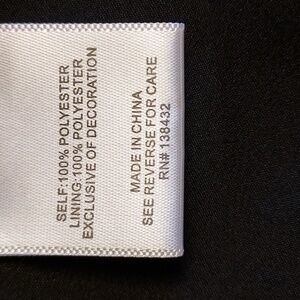 • Fabric: 100% Polyester Self and Lining (Care instructions recommend Hand Wash Cold or Gentle Cycle).