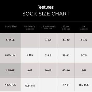 Feetures unisex sock fits sizes US women and men (see chart in photos).