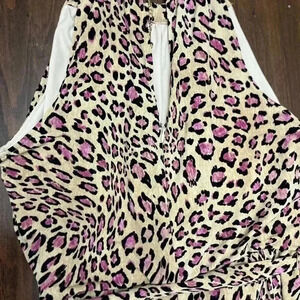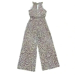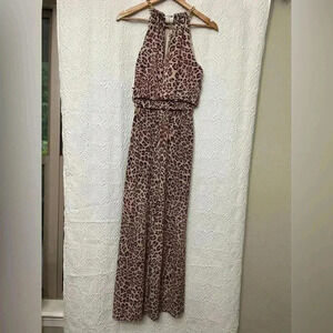2/$12 Thalia Sodi Pantsuit XS Jumpsuit Pink Leopard Print Wide Leg Sleeveless