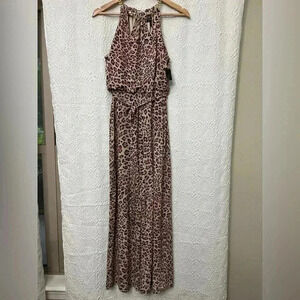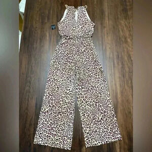 Thalia Sodi Pantsuit Size XS Jumpsuit Pink Leopard Print Wide Leg Sleeveless NWT