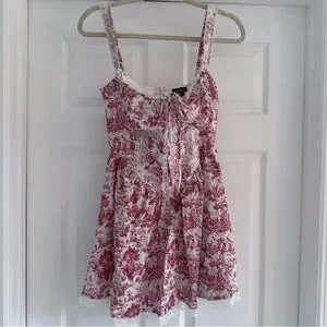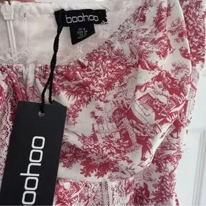 NWT BOOHOO Porcelain Toile Print Strappy Milkmaid Mini Dress 4