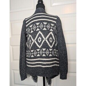 Hollister Gray Aztec Sweater Size S Open Front Cardigan Tassels Southwestern