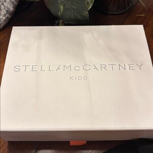 Stella McCartney kids, rainbow nylon metal zipper pulls with the rainbow bag charm is rubber has an adjustable strap. It is EUC. why not treat the young one in your life with a little bit of style as well this bag is super adorable. It measures 5 1/2 x 8 x 2 and has an adjustable strap comes with the box the top corner of the box has a tear, but it’s noted in the photo.