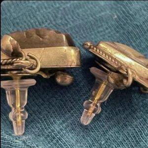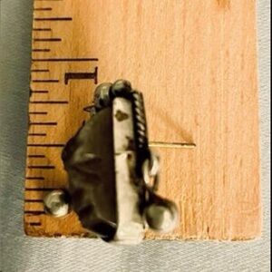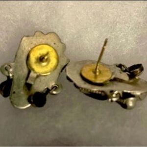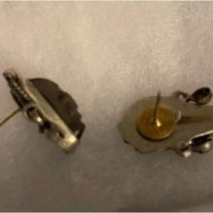 I found these earrings at an estate sale. I’ve seen this type of earring before but never with a pierced setting. These look like they were originally screwback. They aren’t marked as Taxco or 925 but I’m familiar enough with this type of jewelry that I feel confident they are genuine sterling. The comfortable, secure earring backs are included.