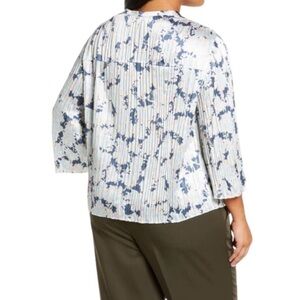Vince Lotus Pleated Blouse Button Down Tide Pool Blue Size 1X NWT