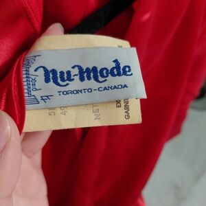 Stunning red satin dress with a layered design. Perfect for special occasions.