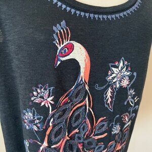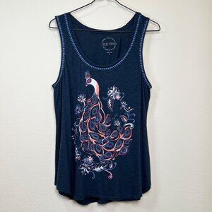 LUCKY BRAND Peacock Embroidered Tank Top Blue Multi Women's Large