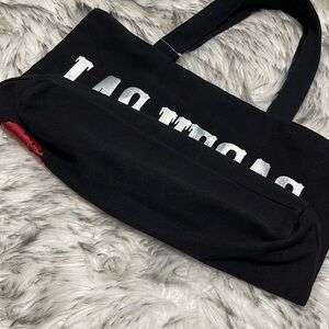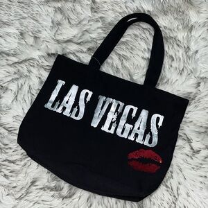 Las Vegas Kiss Foil Graphic Cotton Canvas Tote Bag Black