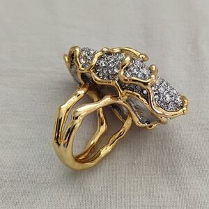 This stunning women's ring features a dazzling combination of gold and silver tones, perfect for adding a touch of elegance to any outfit.