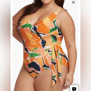 Artesands D/DD underwire one piece Colorful Floral Swimsuit wrap around style