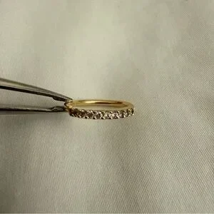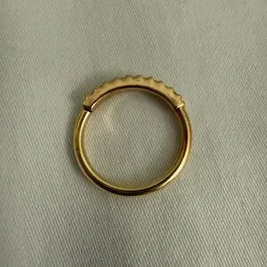 Solid 14k yellow gold seam ring with gems facing outward. Perfect for cartilage (conch), lobes, and nostrils to maximize gem visibility.
