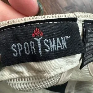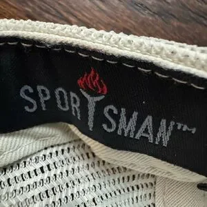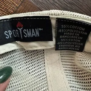 Stylish baseball cap featuring a dark sage olive green front and cream tan mesh back. Embellished with floral embroidery on the front. Great condition. Worn once. Sportsman brand purchased at a boutique.