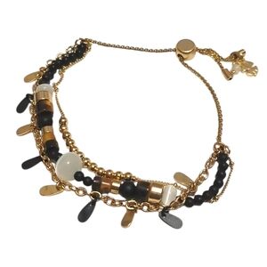 This super cute Lucky Brand bracelet is in great pre-loved condition! It is a beautiful black and gold tiered beaded bracelet with an adjustable length.