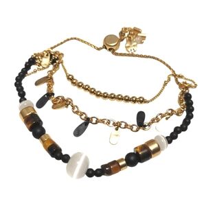 Lucky Brand Gold Black Beaded Layered Adjustable Bracelet