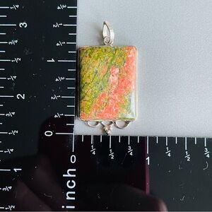 Green & Pink Unakite Jasper Rectangular Sterling Silver Vintage Pendant …