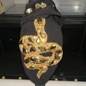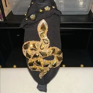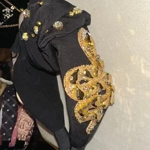 Stylish black headband adorned with gold embellishments. Perfect for adding a touch of glamour.