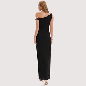 Cocktail Dress, Evening Gown, Ruched Dress, Twist Strap, Mesh Layer, Modal Fabric, Side Slit, Wedding Guest Dress, Party Dress, Formalwear, Event Wear, Maxi Dress, 2026 Release