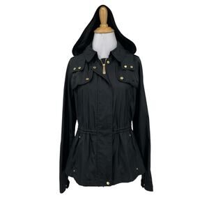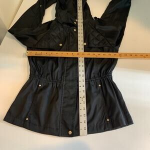 Vince Camuto Jacket Womens PP/PS Black Gold Quilt Trim Anorak Detach Hood