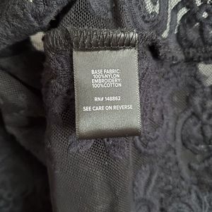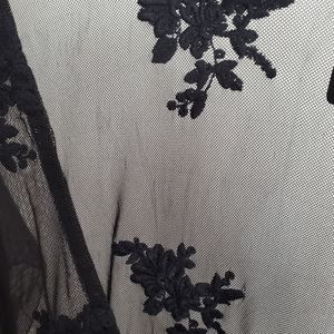 Lightweight mesh top with light stretch. Peplum open button front top with floral embroidery. Last picture shows small mark from being folded