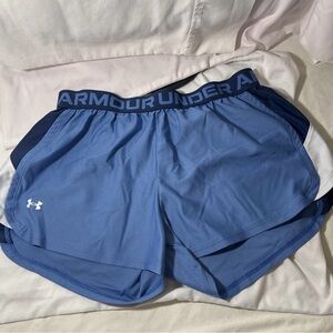 Stay comfortable and stylish with these Under Armour women's blue shorts. Perfect for workouts or casual wear.