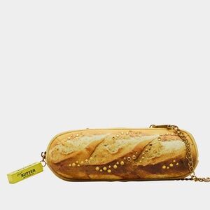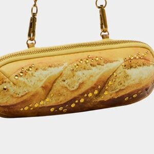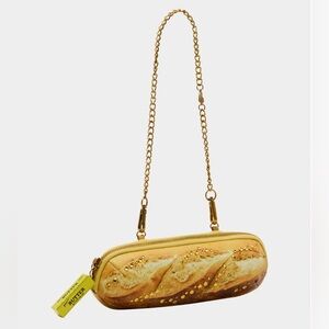 Indulge in some carb-loving style with this KITSCH BAGUETTE ABOUT IT shoulder bag. Adorned with rhinestone embellishments, this baguette-shaped bag comes complete with a chain strap and secure top zipper closure. A quirky and playful addition to any outfit!