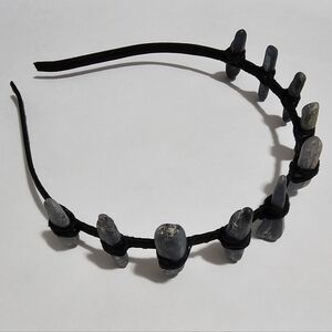 Stylish hairband featuring a sleek black base with elegant blue kyanite accents. Ideal for enhancing any look.