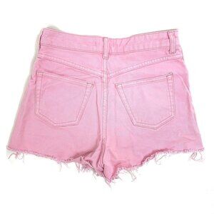 H&M Baby Pink denim Cut Off Shorts Button Fly Mid Rise Frayed Edges Size 6