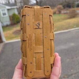 Charming Longaberger basket with a woven tan and red design. Perfect for adding a rustic touch to your decor.