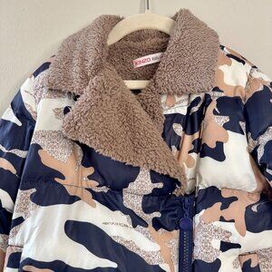 KENZO KIDS Camo Puffer Jacket 10 140 Sherpa-Lined Winter Coat Faux Fur Collar