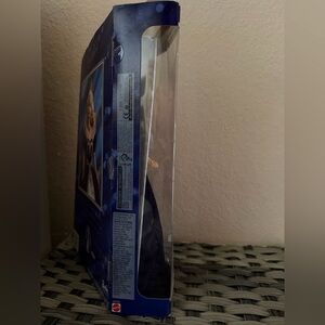 Celebrate the turn of the millennium with this stunning Millennium Princess Barbie, released by Mattel in 1999 as the first in the “Happy Holidays” successor line. Barbie dazzles in her deep midnight blue velvet gown with shimmering silver accents, sparkling tiara, and matching choker — holding a Millennium Keepsake ornament symbolizing the year 2000.