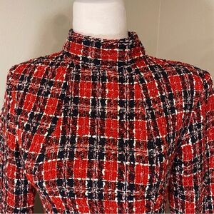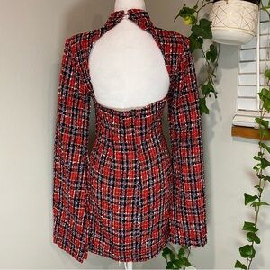 GLAMAKER PLAID BACKLESS SPLIT SLEEVE TWEED BODYCON DRESS size SMALL