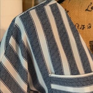 Features all over navy blue and white stripes
