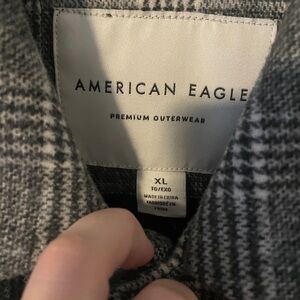 American Eagle Outfitters Men's Black and White Checkered Trench Coat