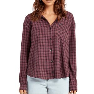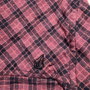 Volcom Women's Pink and Black Plaid Button-Down Long Sleeve Shirt