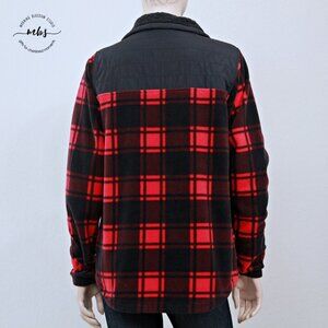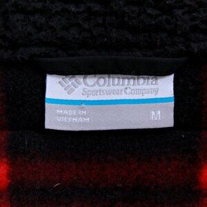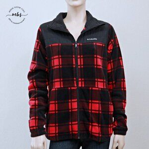 Columbia Benton Springs Overlay Plaid Check Zip Fleece Jacket Red Black Women M