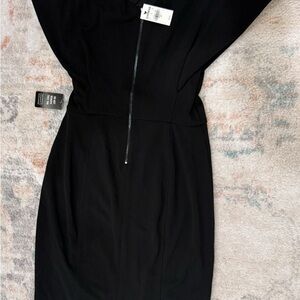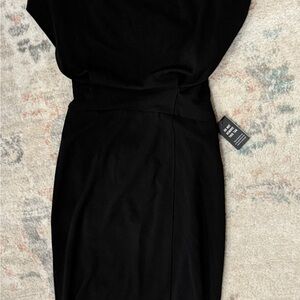 Sophisticated black midi dress by Express. Ideal for versatile styling. Elegant and timeless.
