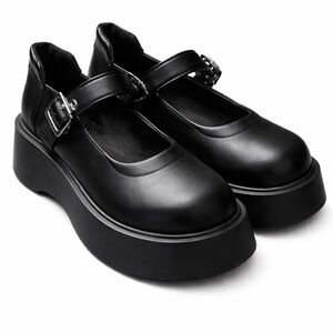 Elevate your style with these elegant black platform Mary Jane shoes. Perfect for any occasion, they combine comfort with a sleek design.