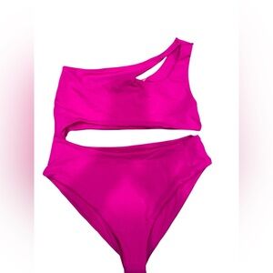 NWOT Lulus Sun Bound Fuchsia Cutout One-Shoulder One-Piece Swimsuit, Size XL