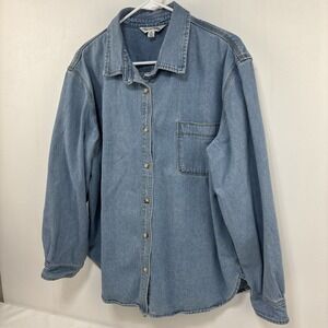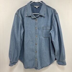 Womens XL Space Mountain Mickey Mouse Goofy Pluto Denim Shirt Vtg Inspired Retro