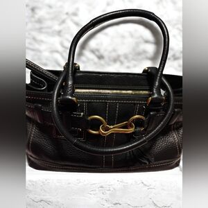 COACH HAMPTONS black leather satchel bag tassel Vintage Good Condition