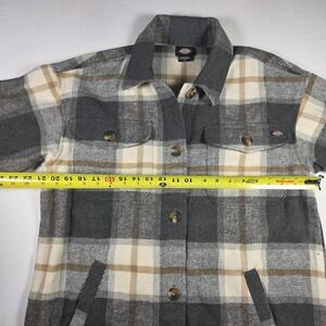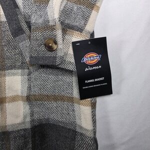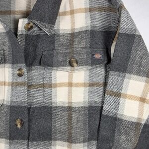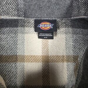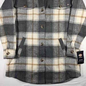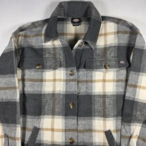 Dickies Women Flannel Shacket Jacket Small Gray Plaid Button Up Warm Workwear