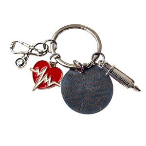 Nurse Keychain Gift Silver Tone Heart EKG Stethoscope Syringe Charm Inspirational Quote