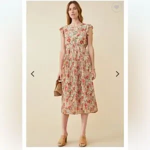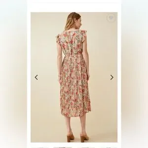 Floral dress with flutter sleeve and pleated skirt