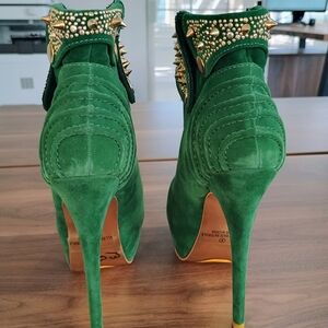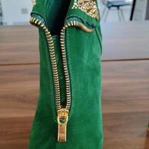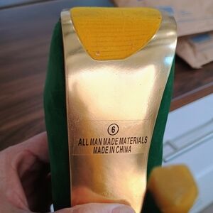Elegant green heels with gold studded details. High stiletto design. Perfect for a night out.