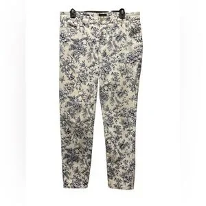 Stylish ankle jeans with a blue floral pattern. Perfect for casual outings. Comfortable fit.
