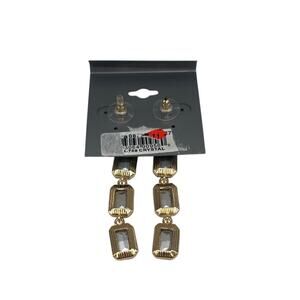Cara Gold Tone Crystal Drop Earrings Square/Rectangle Dangle, NWT