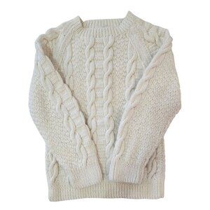 Handmade White Cable Knit Sweater Warm Cozy Design Raglan Sleeves Classic Style