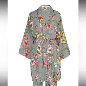 Embrace elegance with this floral kimono robe, featuring a beautiful blend of colors. Perfect for lounging in style.it have missing one belt