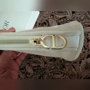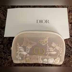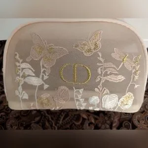 Dior Cream Floral Embroidered Cosmetic Bag New With Box