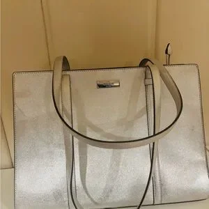 Elegant Kate Spade tote in shimmering silver. Ideal for stylish outings.